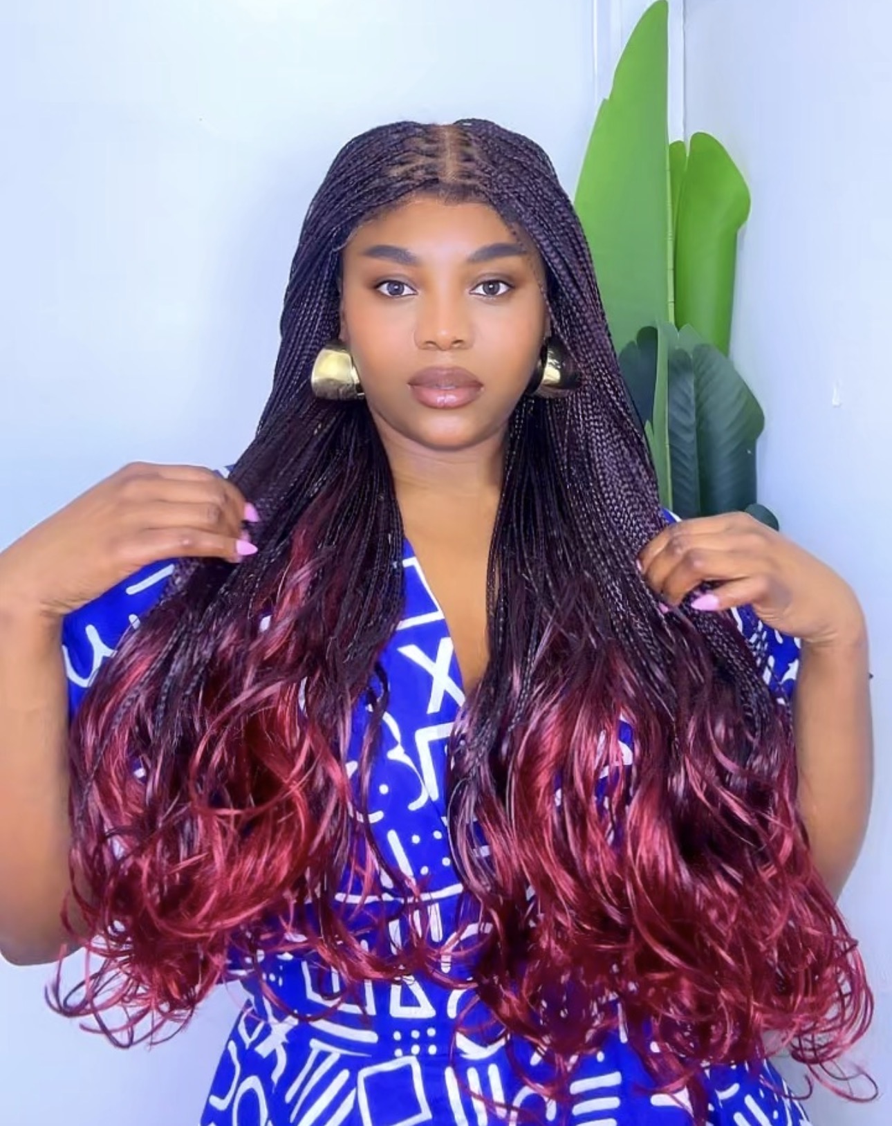 ELVIRA – PERRUQUE EN TRESSE FRENCH CURLY- BOURGOGNE