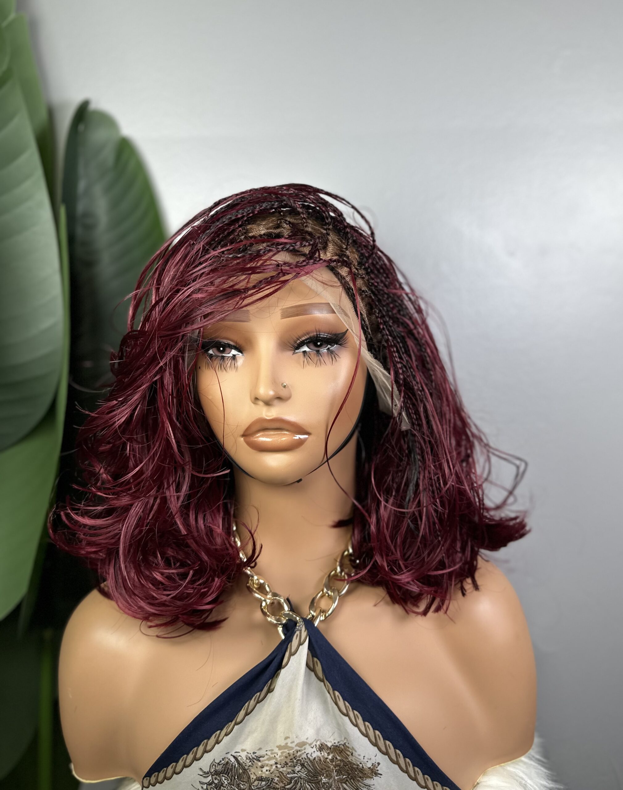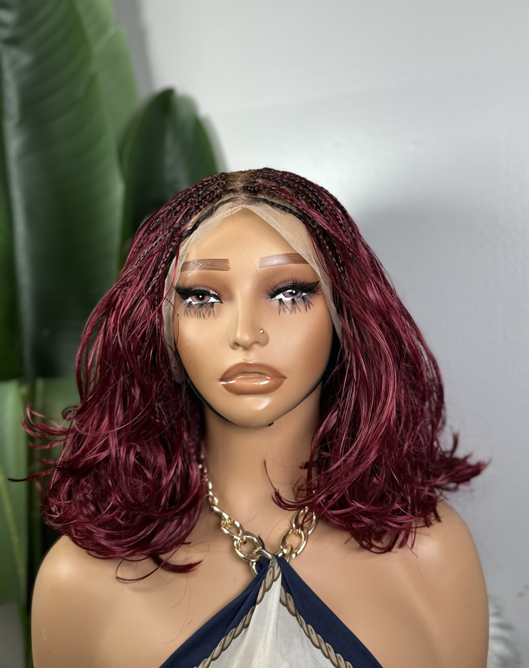 CIARA – PERRUQUE TRESSÉE MINI BOHO BORDEAUX