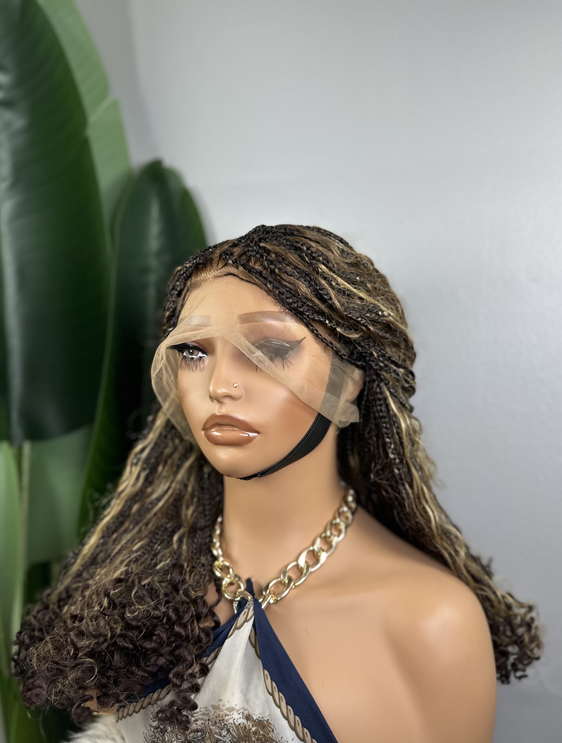 Succombe au charme de la perruque PRINCESSE, une pièce haut de gamme conçue pour sublimer ton style avec élégance et naturel. Réalisée en 💯 cheveux humains, cette perruque en tresses mini knotless full lace bouclées offre un rendu ultra réaliste, léger et confortable à porter au quotidien.