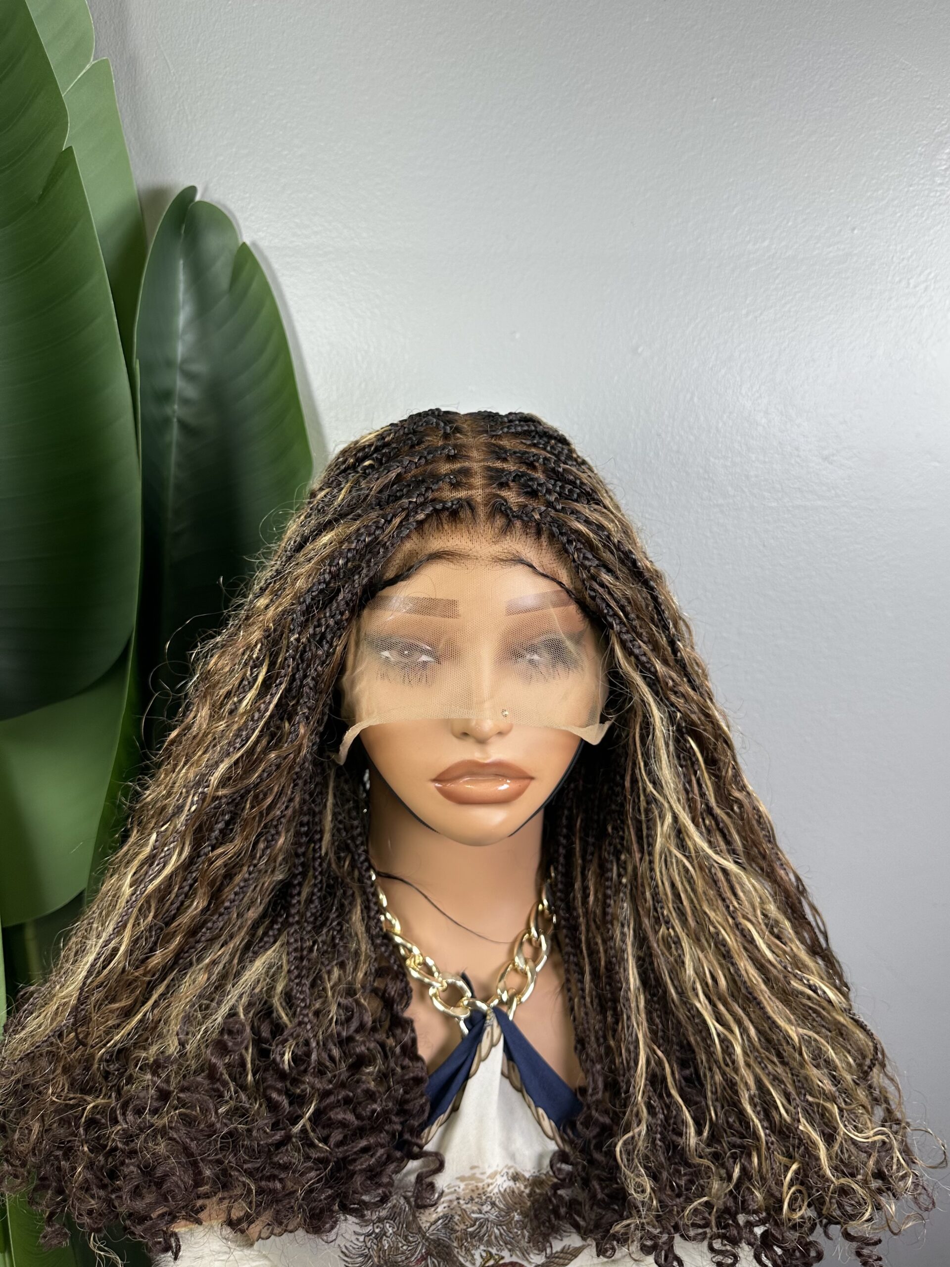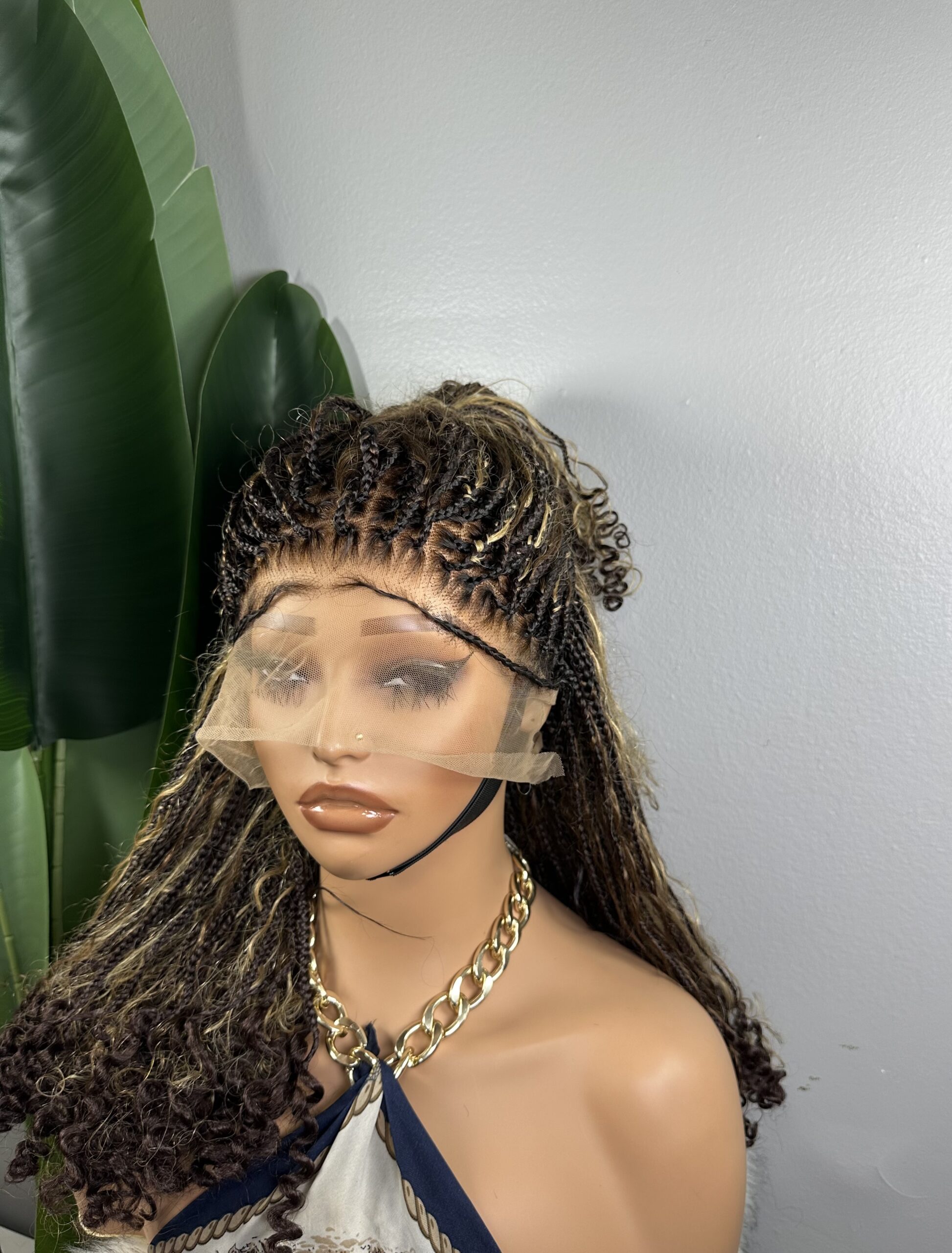 PRINCESSE – PERRUQUE EN TRESSE PIANO MINI KNOTLESS FULL LACE AVEC DES BOUCLES 100% HUMAINS